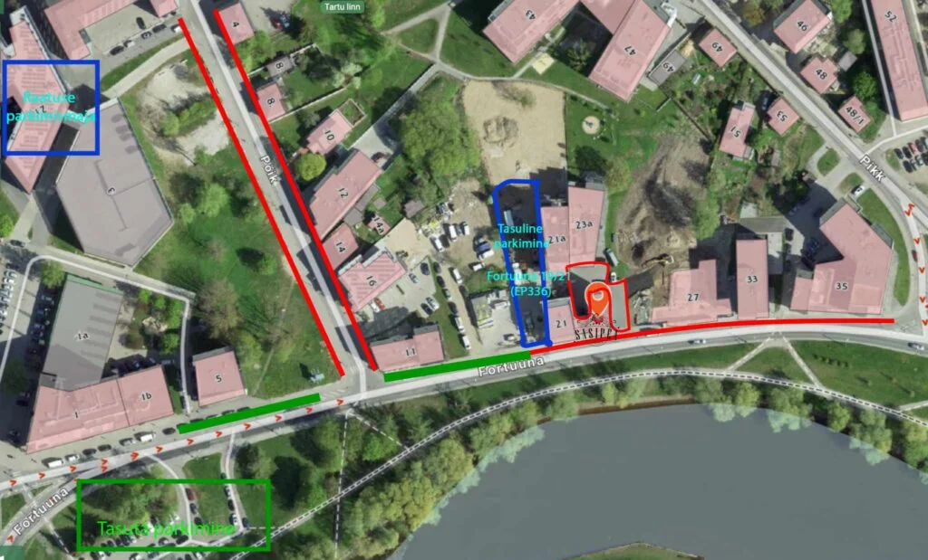 Tasuta parkimine: Fortuuna tn 2 (fortuuna tänava alguses, paremat kätt emajõe äärne parkimisala) tasuta parkimine.